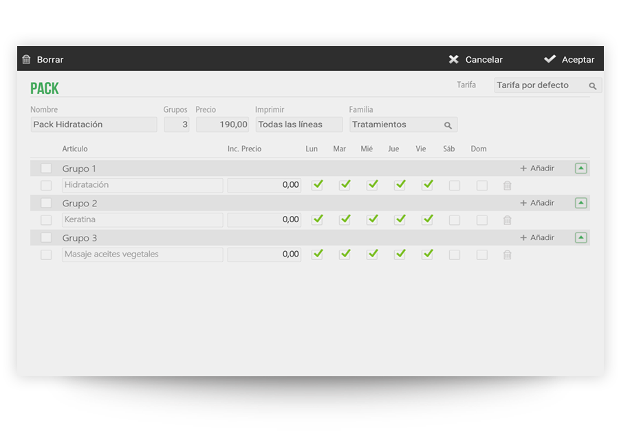 HIOPOS will allow you to decide which services can be part of the package and which days of the week will be available