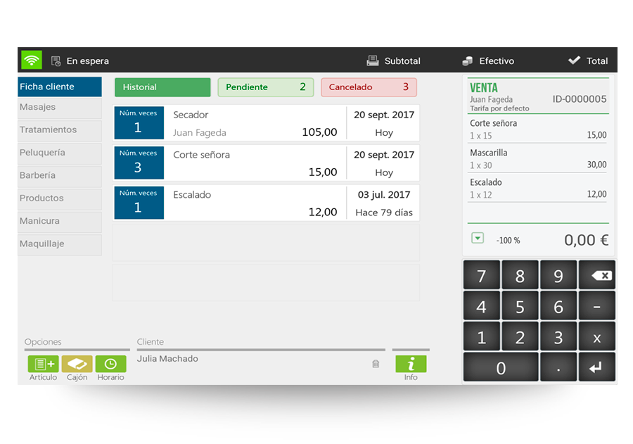 Don’t lose clients If your Hair salon is full, create waiting lists through the Sitting application, recording the data of final customers in order to be able to notify them via SMS when a spot is free in your salon. No expensive additional items to break or lose.